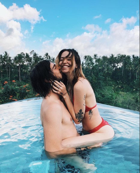 “Ідеальний час”, – підписала вона фото, на якому обіймається з коханим в басейні.