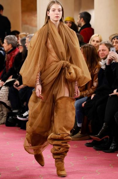 Дизайнери бренду запропонували комбінувати уггі на шпильці з шкіряними куртками, широкими блузами з шифону з драпіруванням і жакетами-oversize. При цьому вільні халяви чобіт можна піднімати до cтегна, або вивертати хутром назовні.