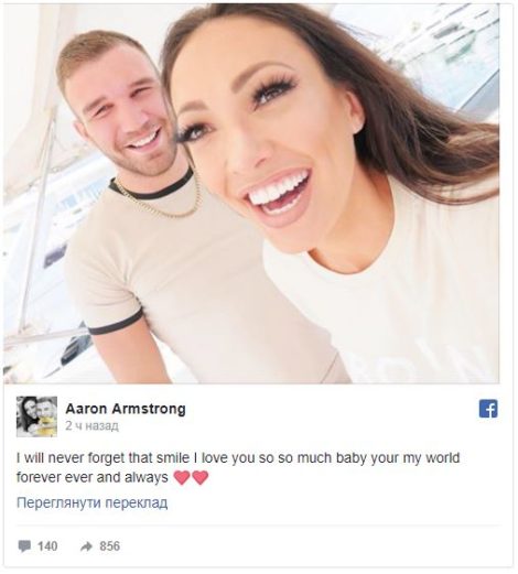“Я ніколи не забуду цю усмішку, я так сильно тебе кохаю, ти мій світ назавжди”, – підписав Аарон фото, яке розмістив на сторінці у Facebook і на якому зображений разом з коханою.